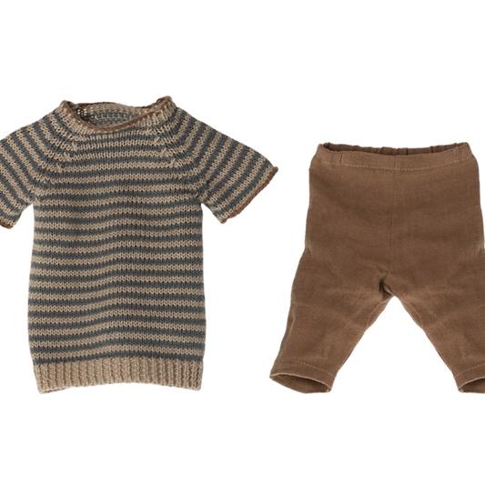 2022 Maileg Brown Pants and Striped Knitted Shirt - Size 5