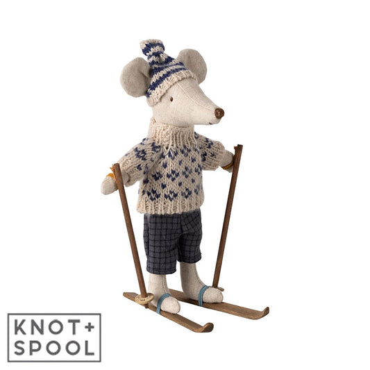 2024 Maileg Blue Winter Dad Mouse with Ski Set