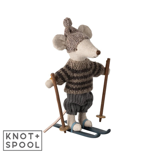 2024 Maileg Grey Winter Big Brother Mouse with Ski Set
