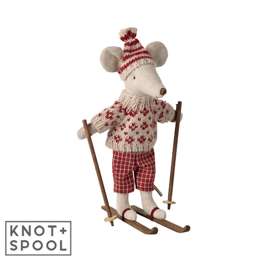 2024 Maileg Red Winter Mum Mouse with Ski Set