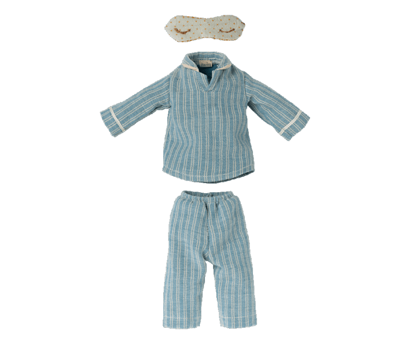 2022 Maileg Medium Mouse in Blue Stripe Pyjamas