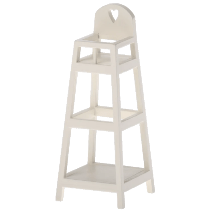 A Tiny High Chair for Tiny Friends: The word "My" in Danish means "tiny," and that's exactly what this wooden high chair is designed for. It's the ideal size for your Baby Rabbit Girl, Baby Boy, or Baby Mice. With its heart-shaped design carved on the back, this charming high chair is perfect for pretend meals and snacks.