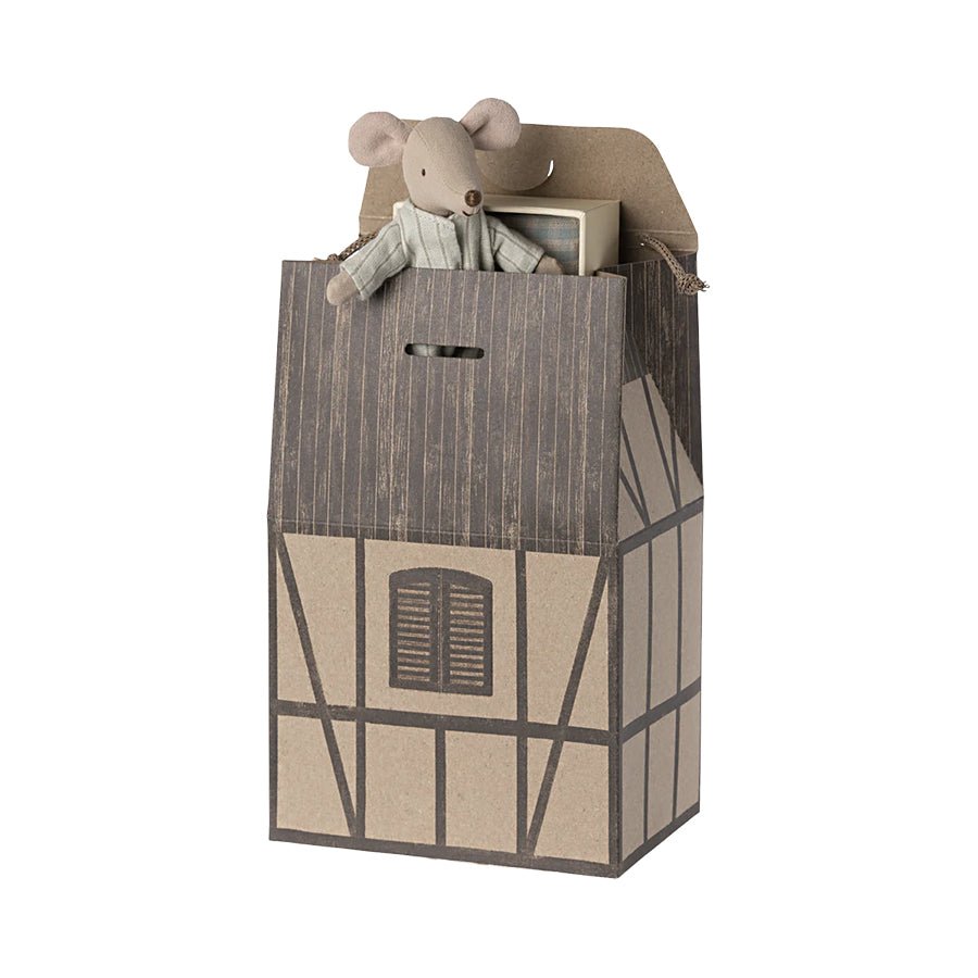 Introducing the Maileg Brown Farmhouse Bag - a unique and enchanting way to present your Maileg gifts. Crafted from high-quality paper, this delightful bag is designed to resemble a cozy farmhouse, complete with a quaint door and window. Its charming appearance ensures that the magical Maileg story begins the moment your loved one lays eyes on it. Whether you're wrapping a tiny treasure for a special someone or adding a touch of whimsy to your Maileg collection, this farmhouse bag is the perfect choice.