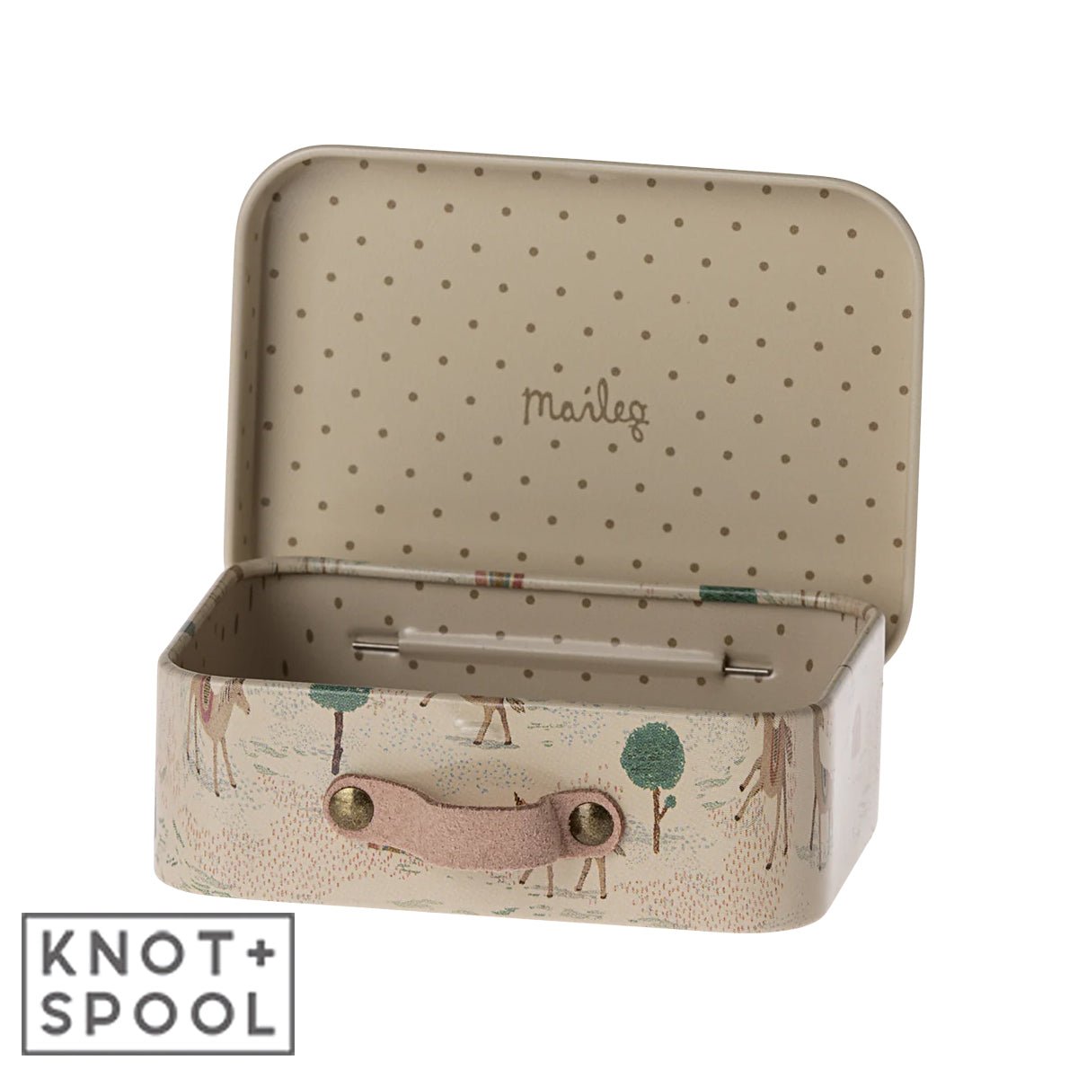 Embark on everyday adventures with the Maileg Suitcase, a perfectly crafted small metal suitcase featuring vibrant illustrations and exquisite details. Ideal for storing tiny treasures, gifting delights, or as a travel companion for your beloved Maileg mice and bunnies.