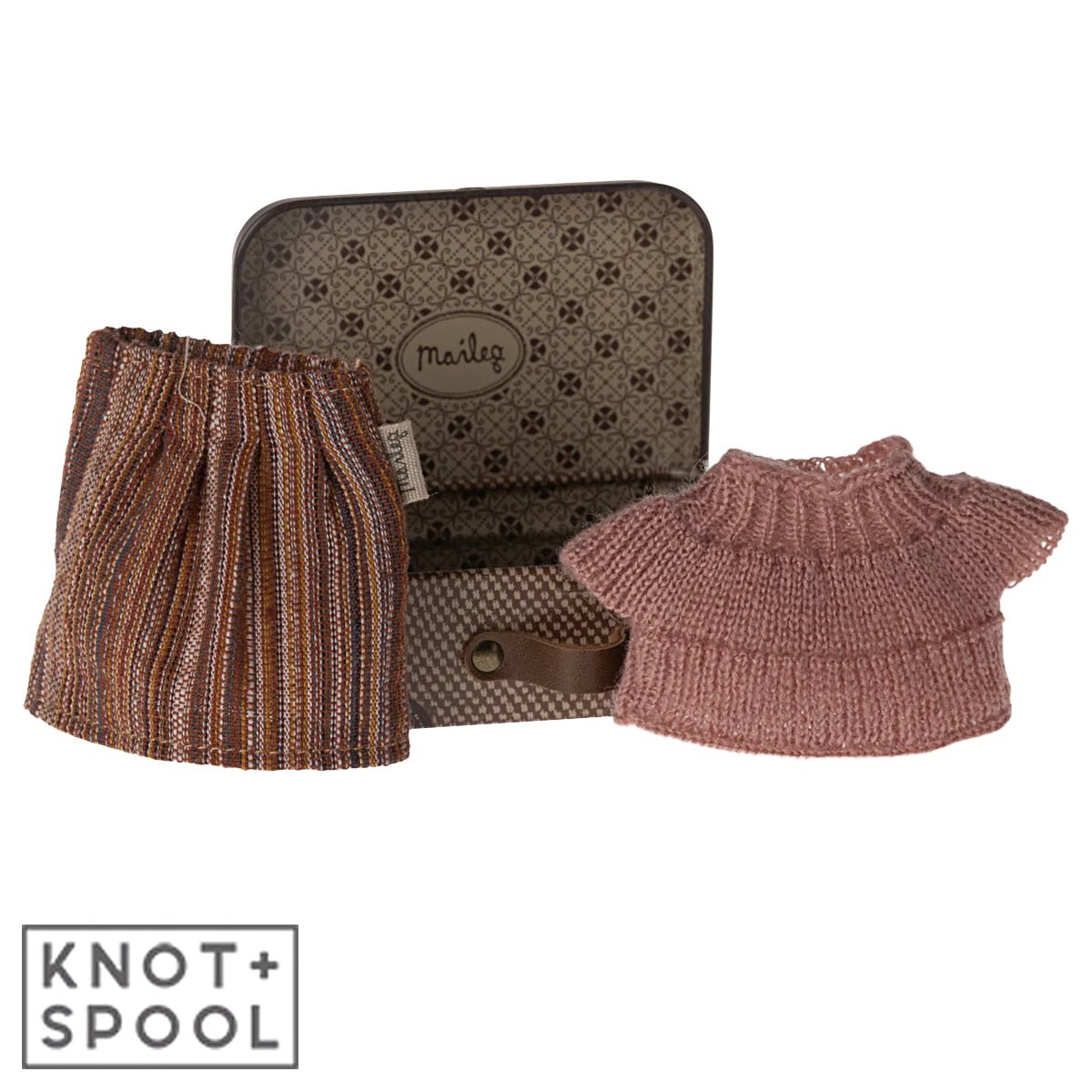 2024 Maileg Grandma Mouse Knitted blouse and skirt In Suitcase