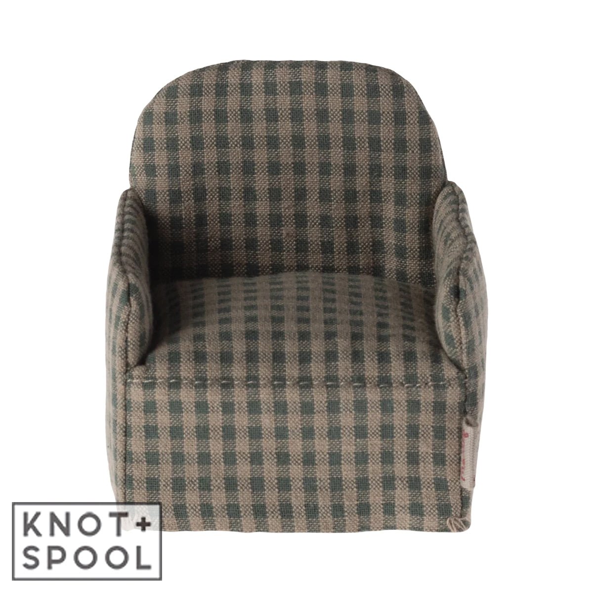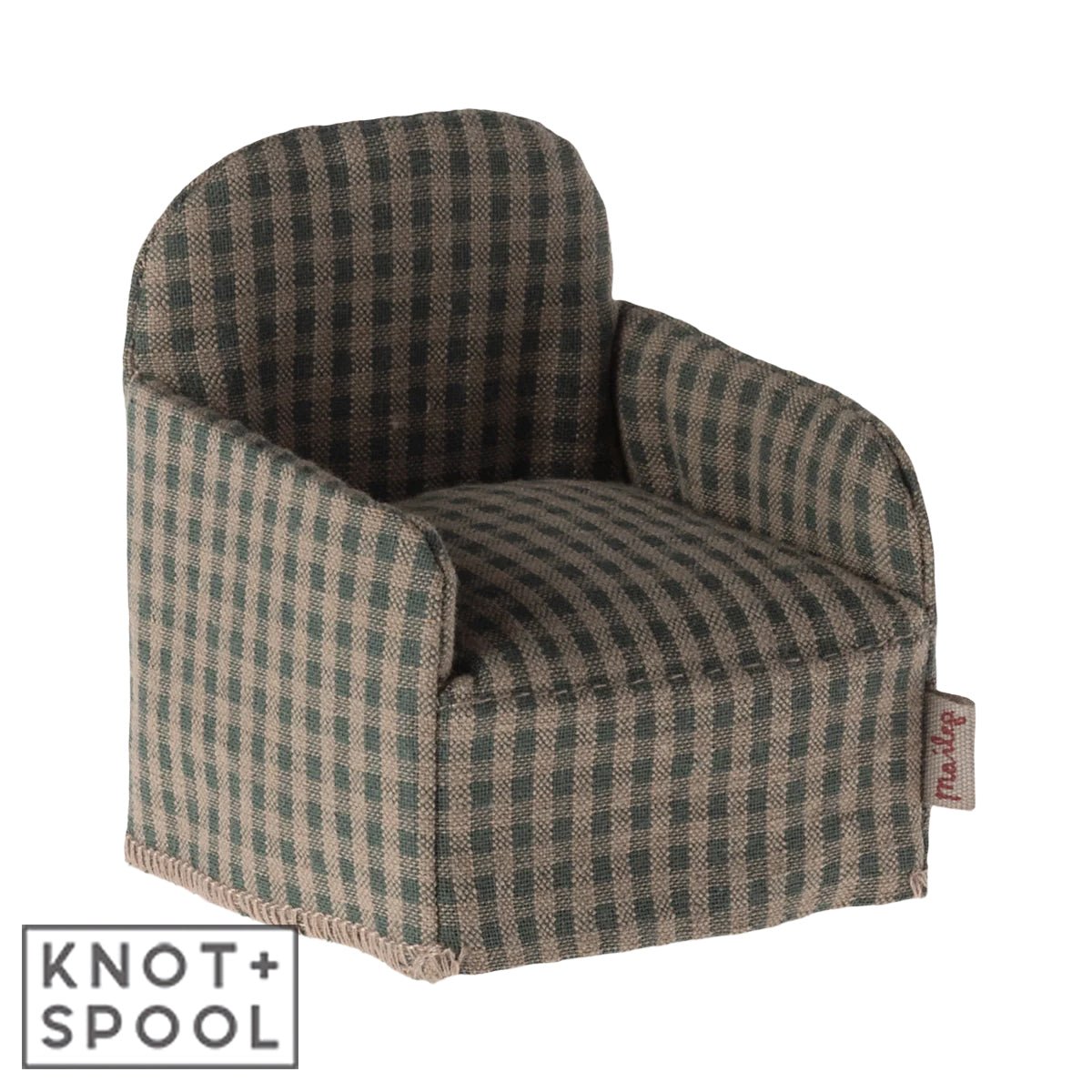 Complete your Maileg setup with the Maileg Green Checker Mouse Chair, a perfect resting spot for your tiny friends.