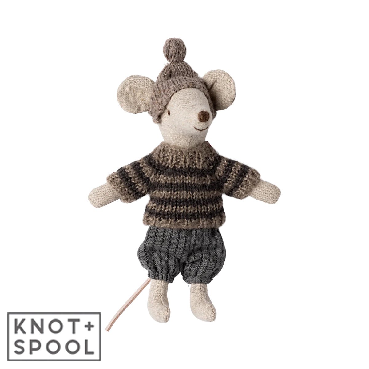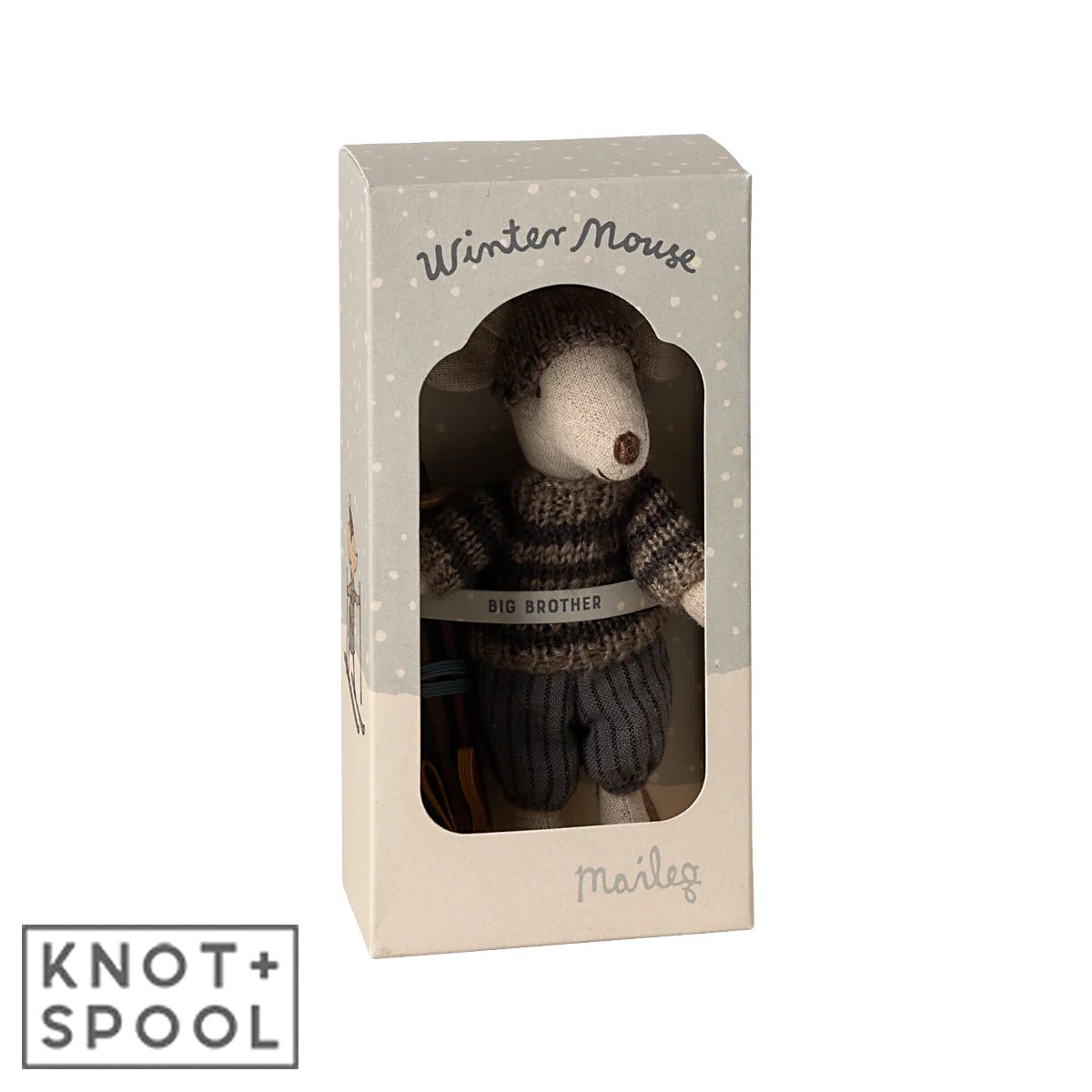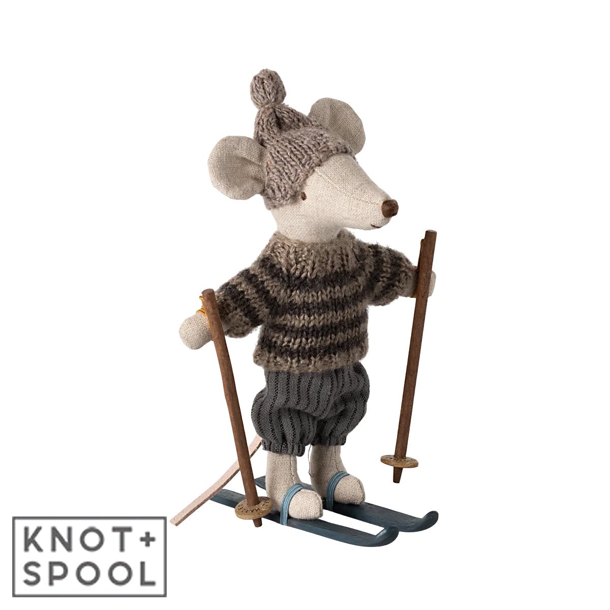 Maileg Grey Winter Big Brother Mouse with Ski Set
