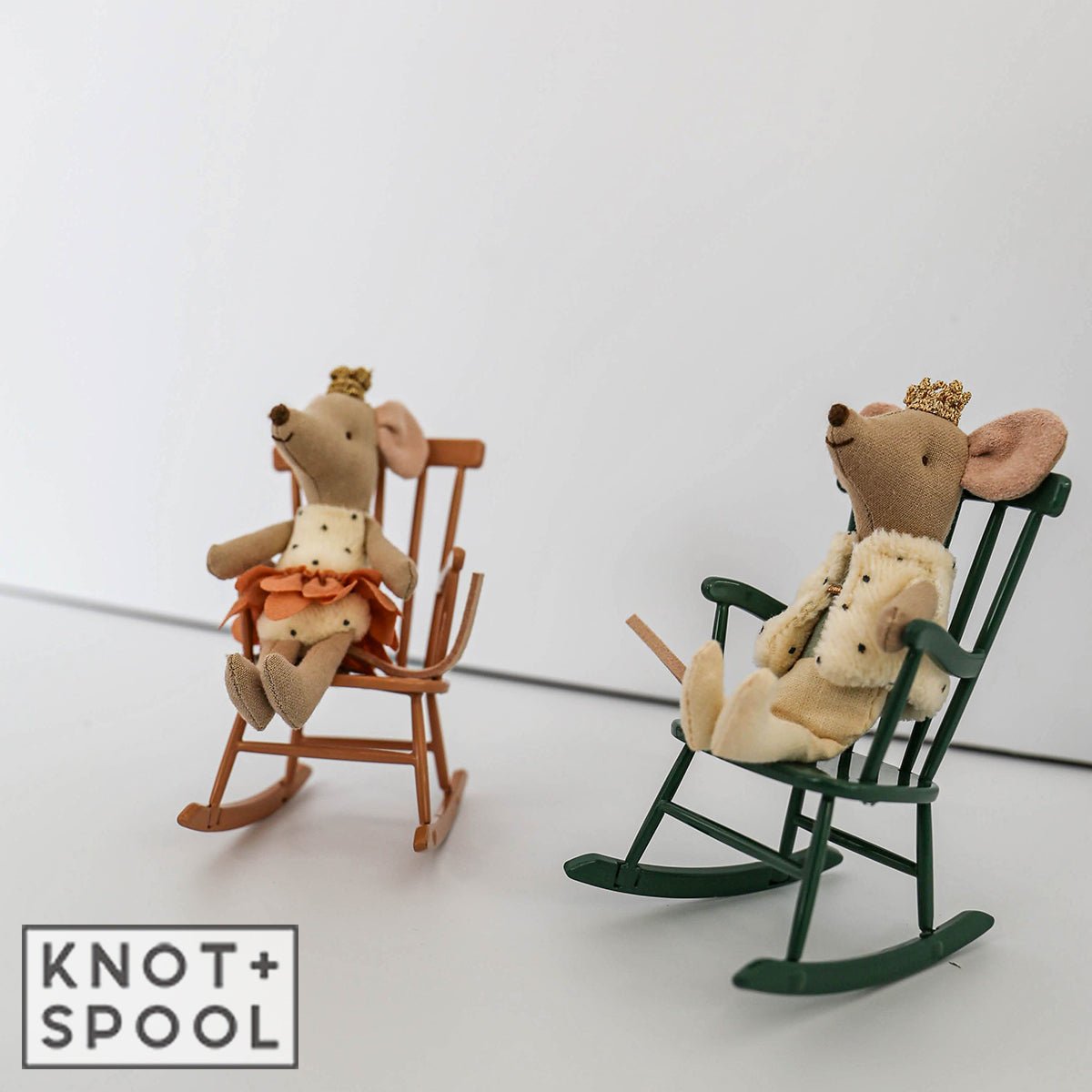 Gift your child the joy of companionship with this exquisite Maileg Mouse accessory and watch as they create a world of adventure and comfort for their miniature friends. This rocking chair isn't just a toy; it's a keepsake that weaves enchanting tales and sweet dreams.