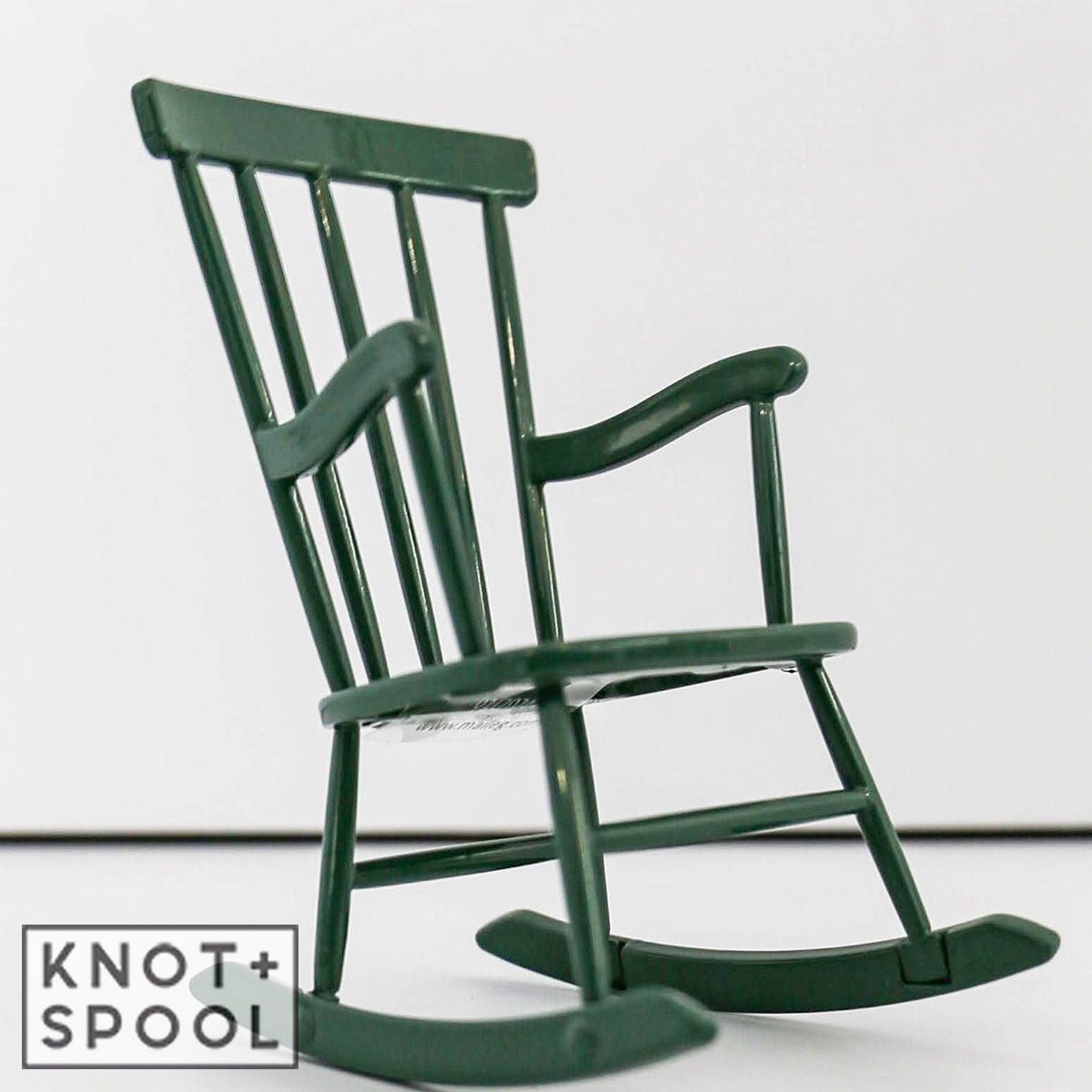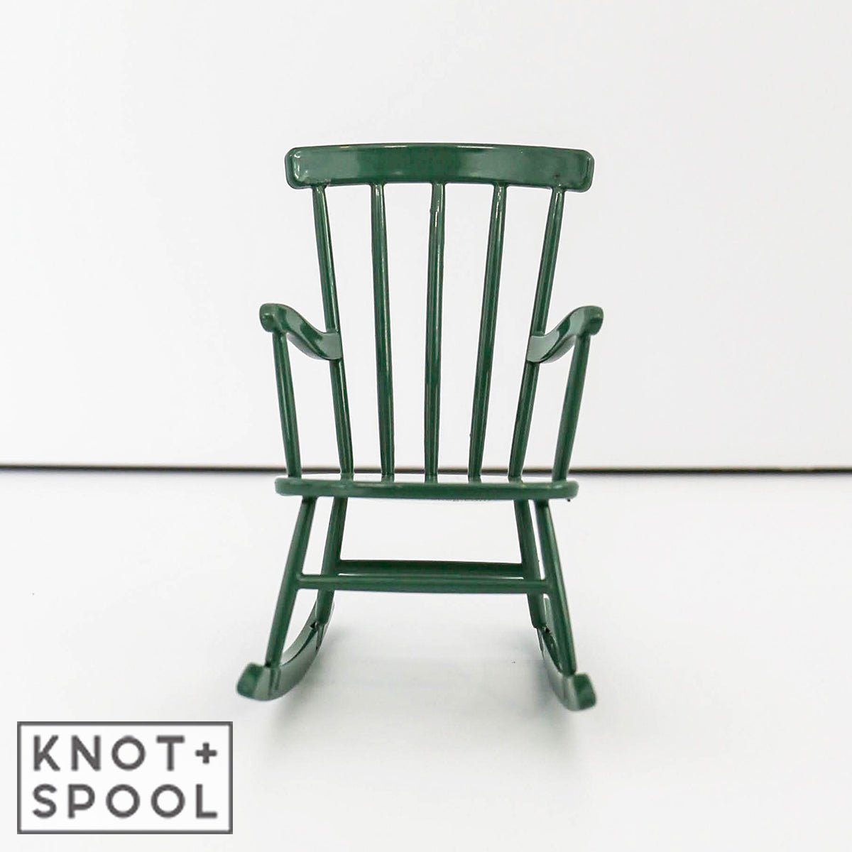 Welcome a touch of whimsy and comfort into your Maileg world with the Maileg Mouse Dark Green Rocking Chair. Designed to cradle your beloved Maileg friends, this metal rocking chair is both sturdy and stylish, perfect for a restful retreat or a cozy nook for storytelling.