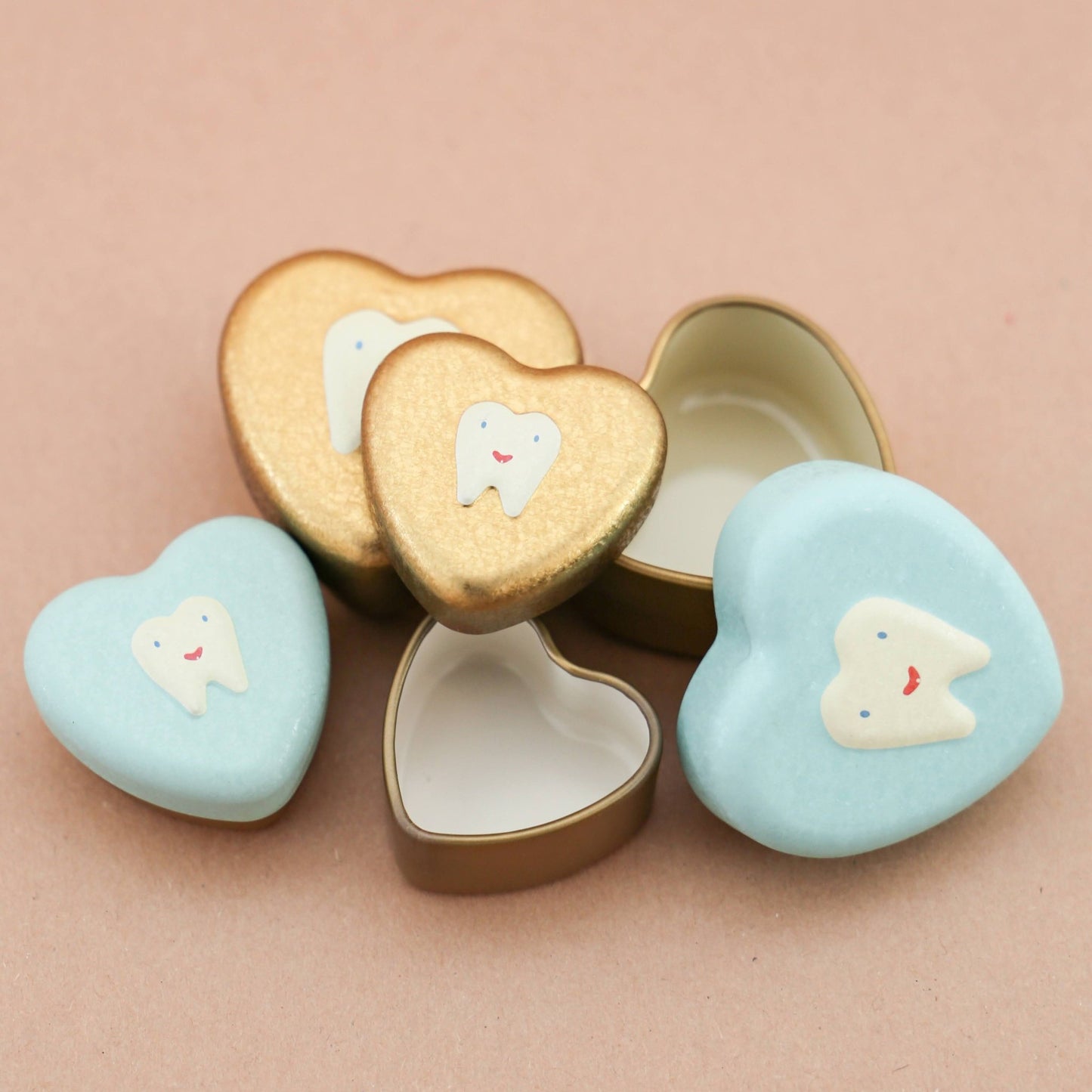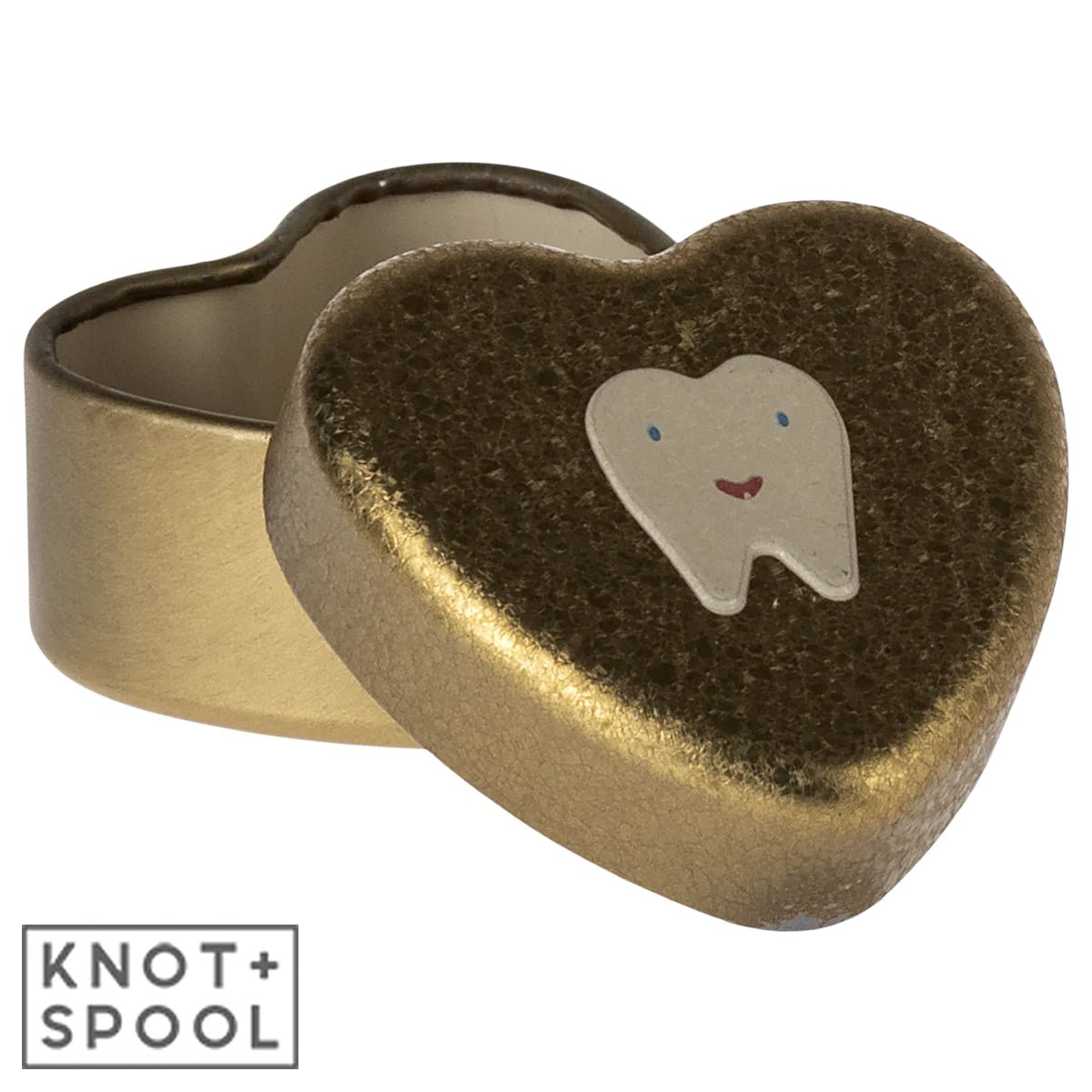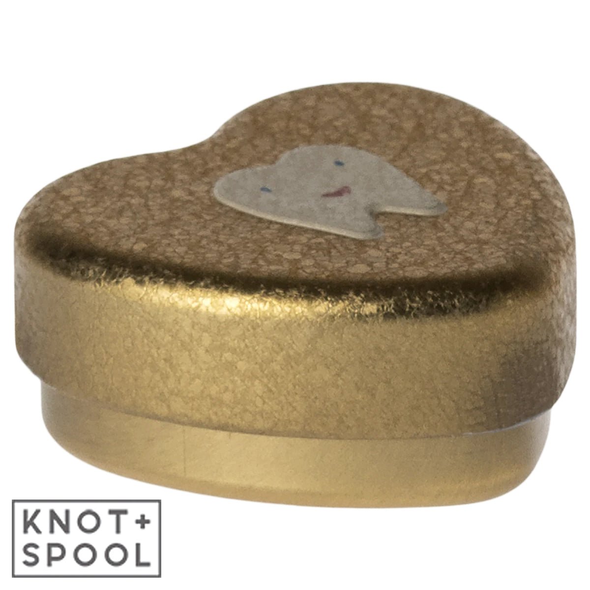 Introducing the enchanting Maileg Small Gold Tooth Box, a treasure trove for keeping childhood memories alive. Crafted with love, this petite metal heart is not just a box; it's a keepsake for precious milestones. Its special crackled surface and delicate tooth embossment on the lid make it a unique piece for any child's collection.