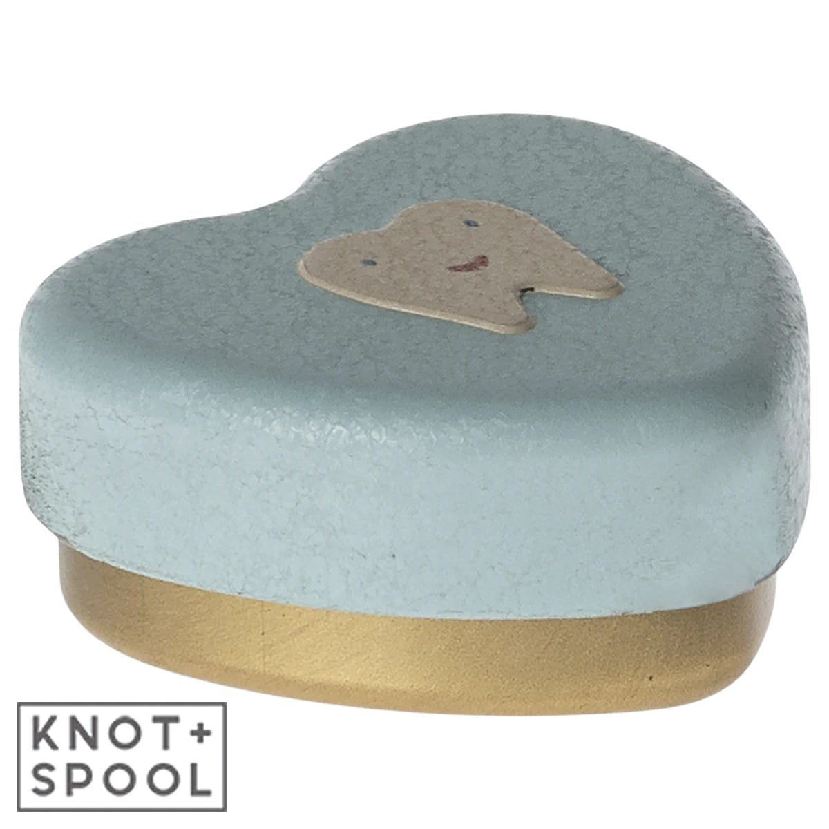 Part of the beloved Maileg Tooth Fairy Collection, this small mint box is not only functional but filled with whimsy. It's the perfect addition to your child's Maileg collection, bringing a storybook charm to everyday moments. Imagine the excitement of placing a tiny tooth in this beautiful box for the Tooth Fairy's visit!