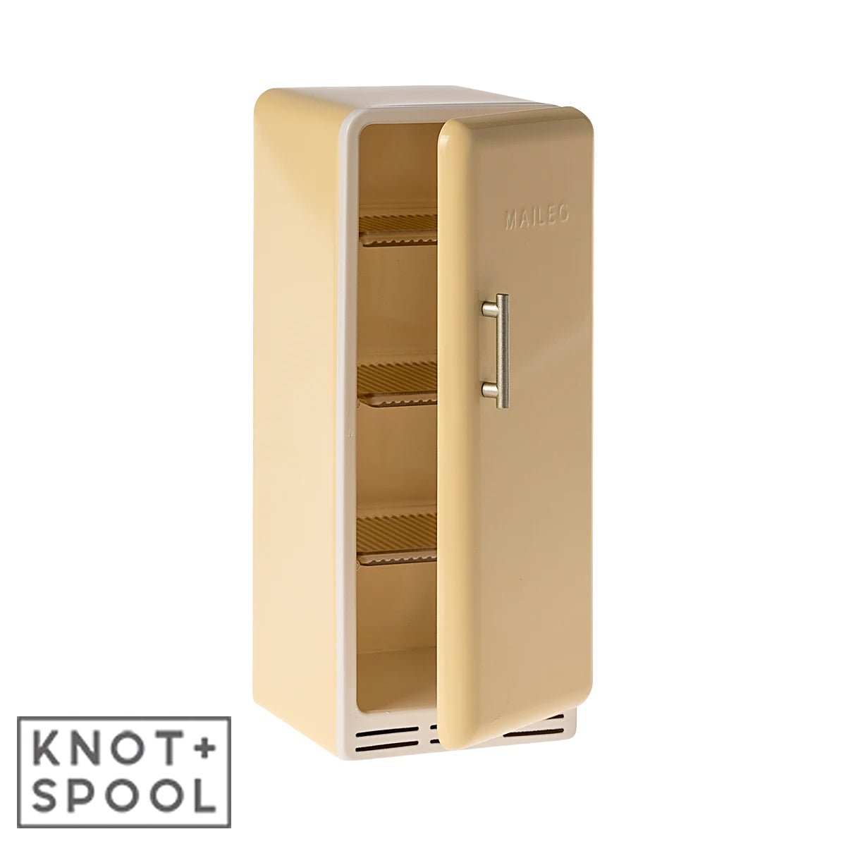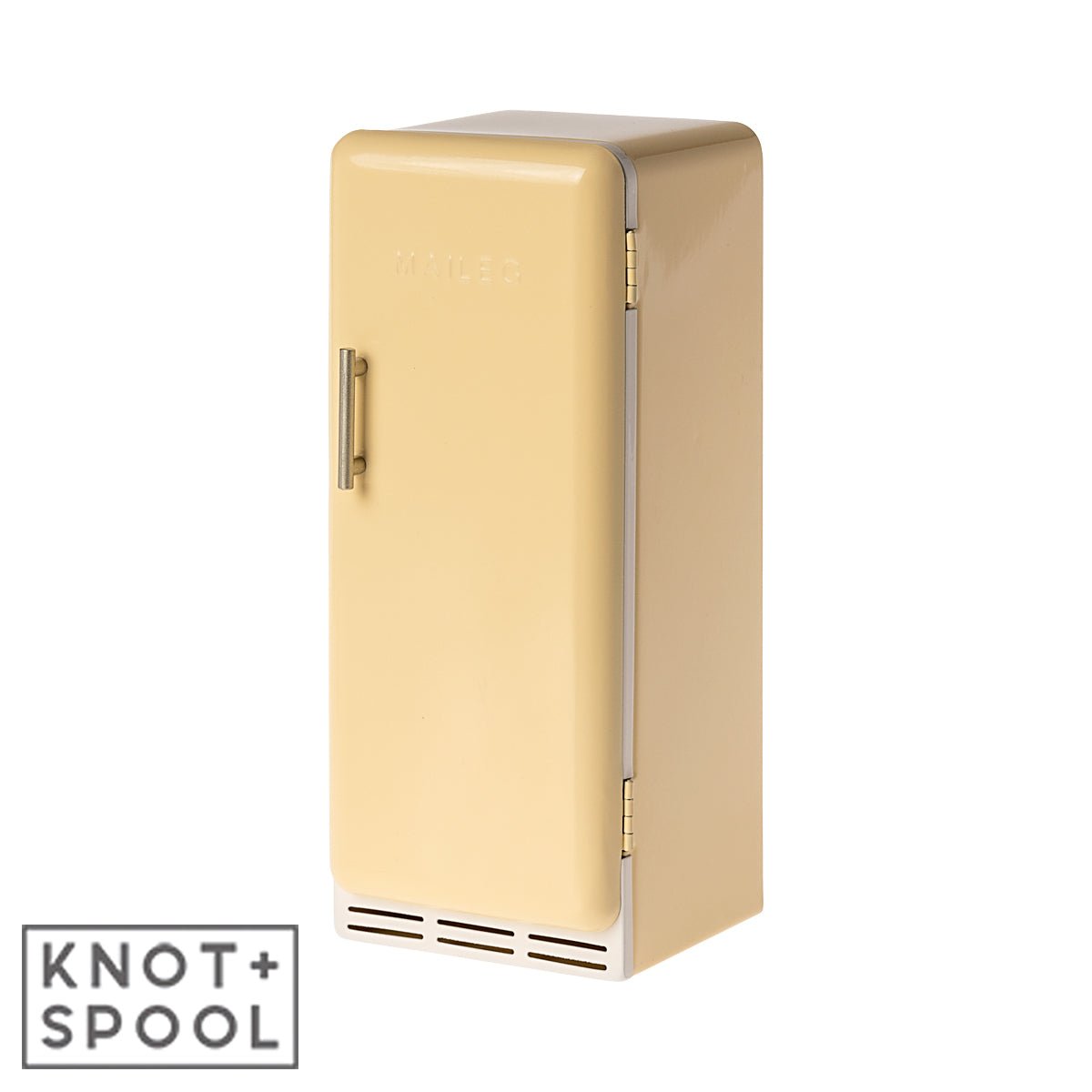 Introducing the 2024 Maileg Yellow Miniature Fridge, a delightful addition to your House of Miniature dollhouse. This old-fashioned fridge is designed to fit perfectly into your miniature world, bringing a touch of vintage charm and functionality to your dollhouse play. Crafted from metal, it features a magnetic lock and frosted shelves inside, making it a must-have accessory for your miniature household.