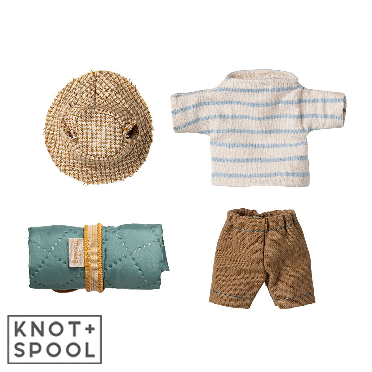 Adventure awaits with the Maileg Big Brother Hiker Mouse in his charming light-blue striped outfit! This brave Maileg Mouse is dressed and ready for a journey through the great outdoors. With his cozy sleeping bag in tow, he’s prepared for nights under the stars and days filled with exploration.