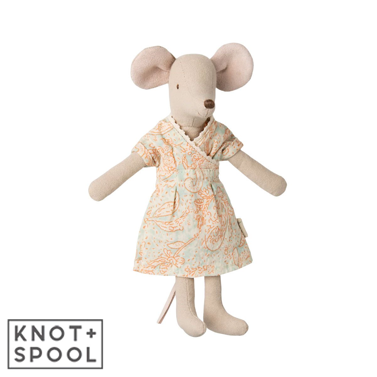 Meet the elegant and timeless Maileg Mum Mouse, dressed in a lovely light-colored dress. This classic Maileg character is the perfect addition to your Maileg family and fits beautifully in a Maileg Dollhouse. Mum Mouse is compatible with furniture and accessories in mouse size, and you can expand her wardrobe with clothing made for mum/dad mice. Whether for imaginative play or display, she’s sure to bring joy and charm to any collection.