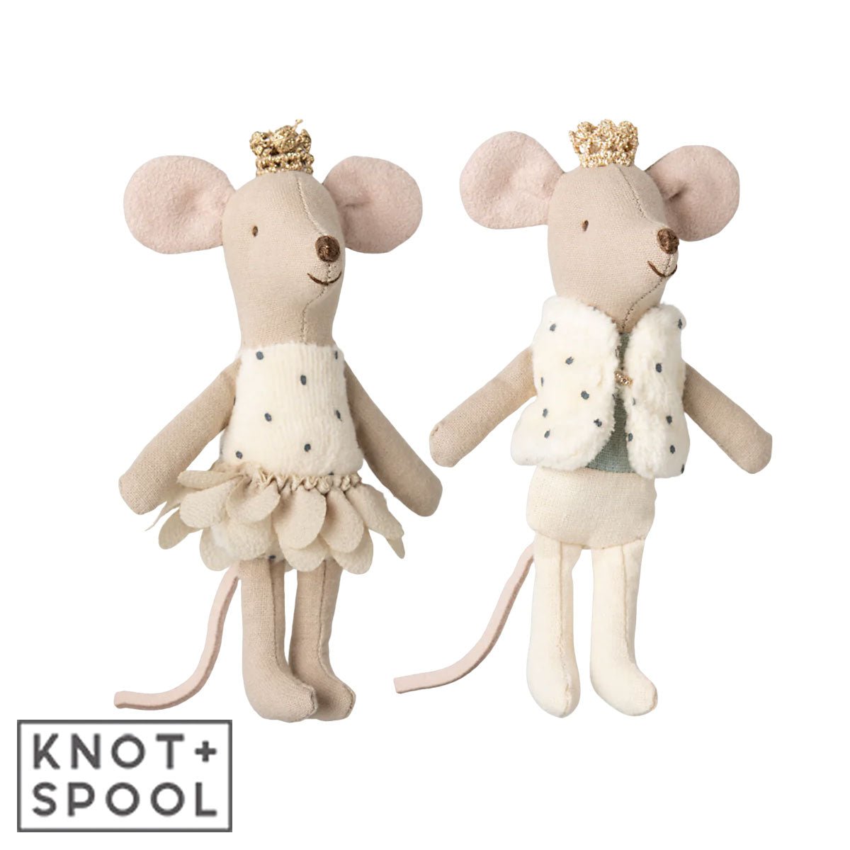 Meet the charming Maileg Royal Twin Mice—a delightful set featuring a little princess and prince, dressed in their finest royal attire. Wearing golden crowns and beautifully detailed outfits, these regal siblings bring fairy-tale magic to playtime.