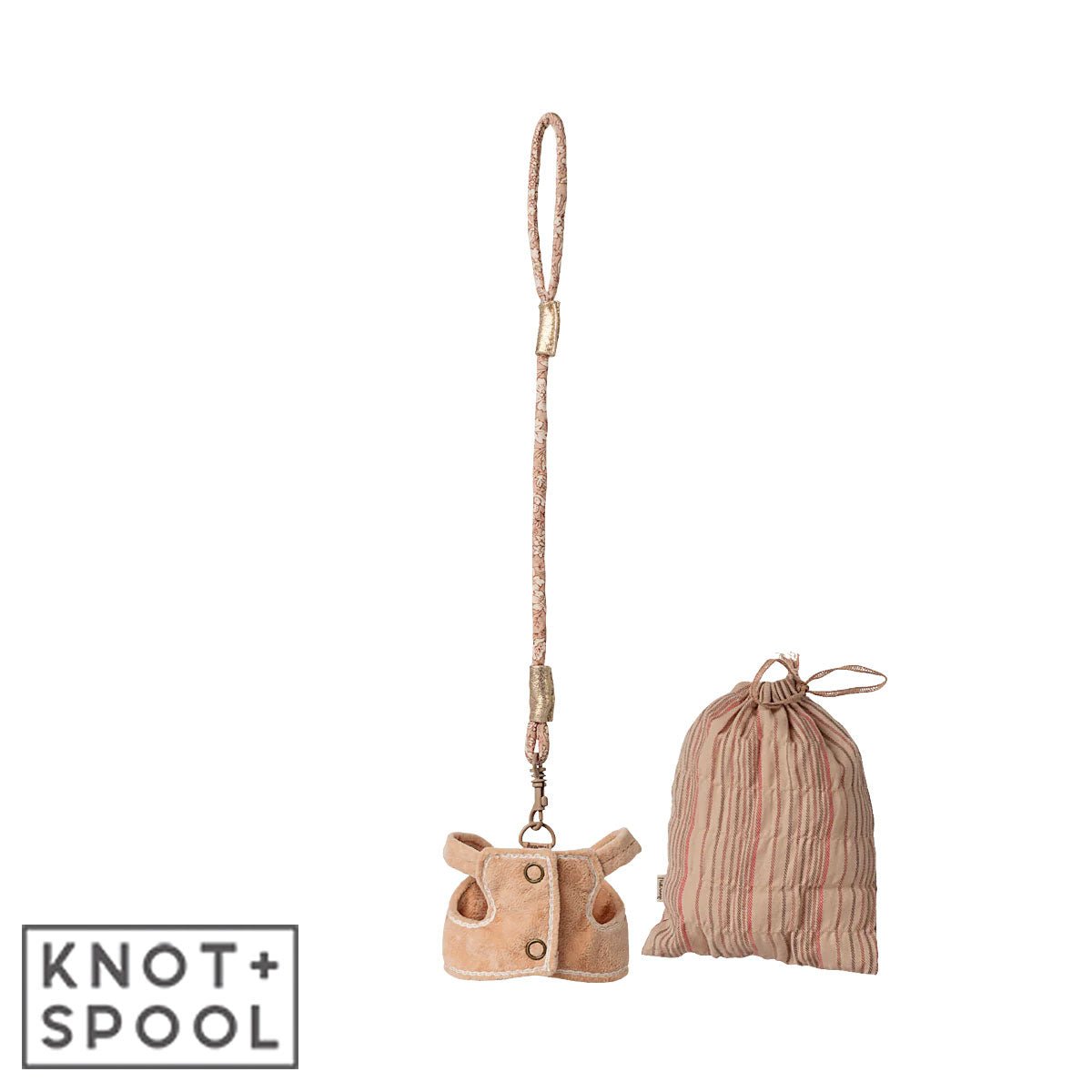 Beautifully packaged in a tiny fabric storage bag, this harness set keeps things tidy when not in use. Whether you're planning a bunny walk around the Maileg toy nursery or heading off on a pretend park day, this set adds charm, functionality, and fun to every play moment.