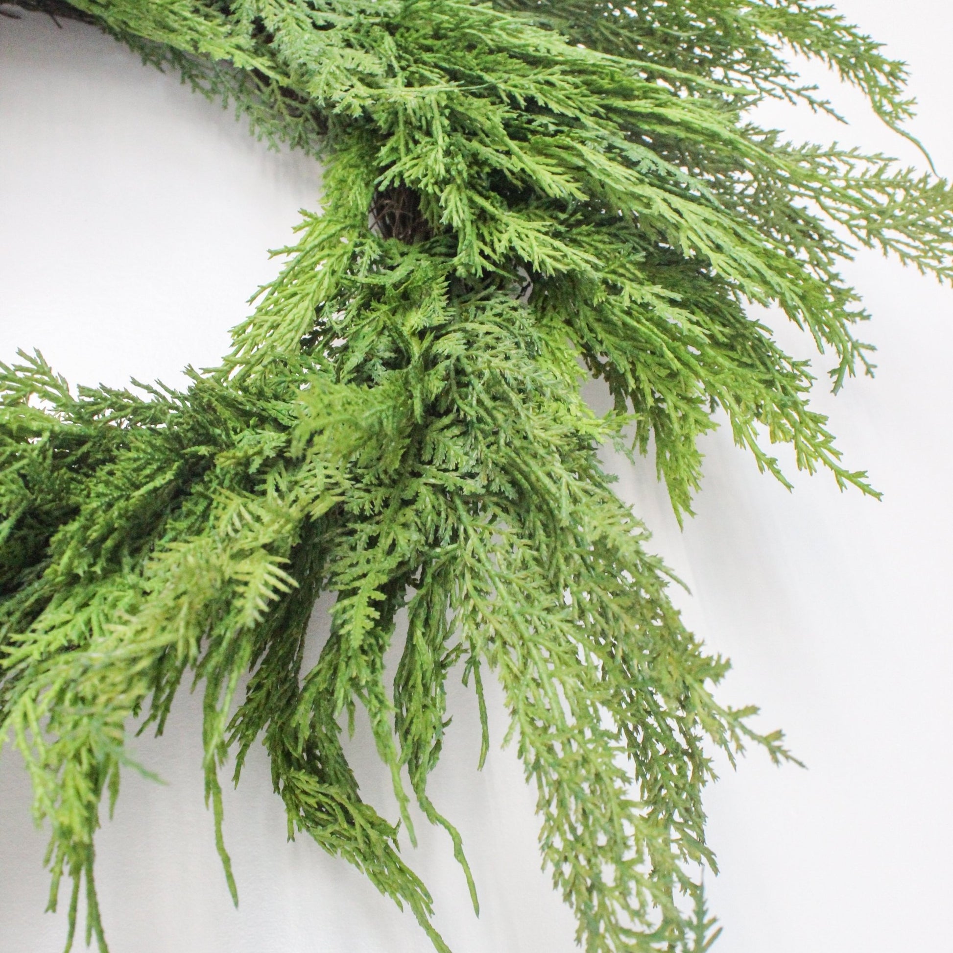 Enhance your holiday decor with this Faux Cedar Wreath and bring a touch of evergreen beauty to your home.