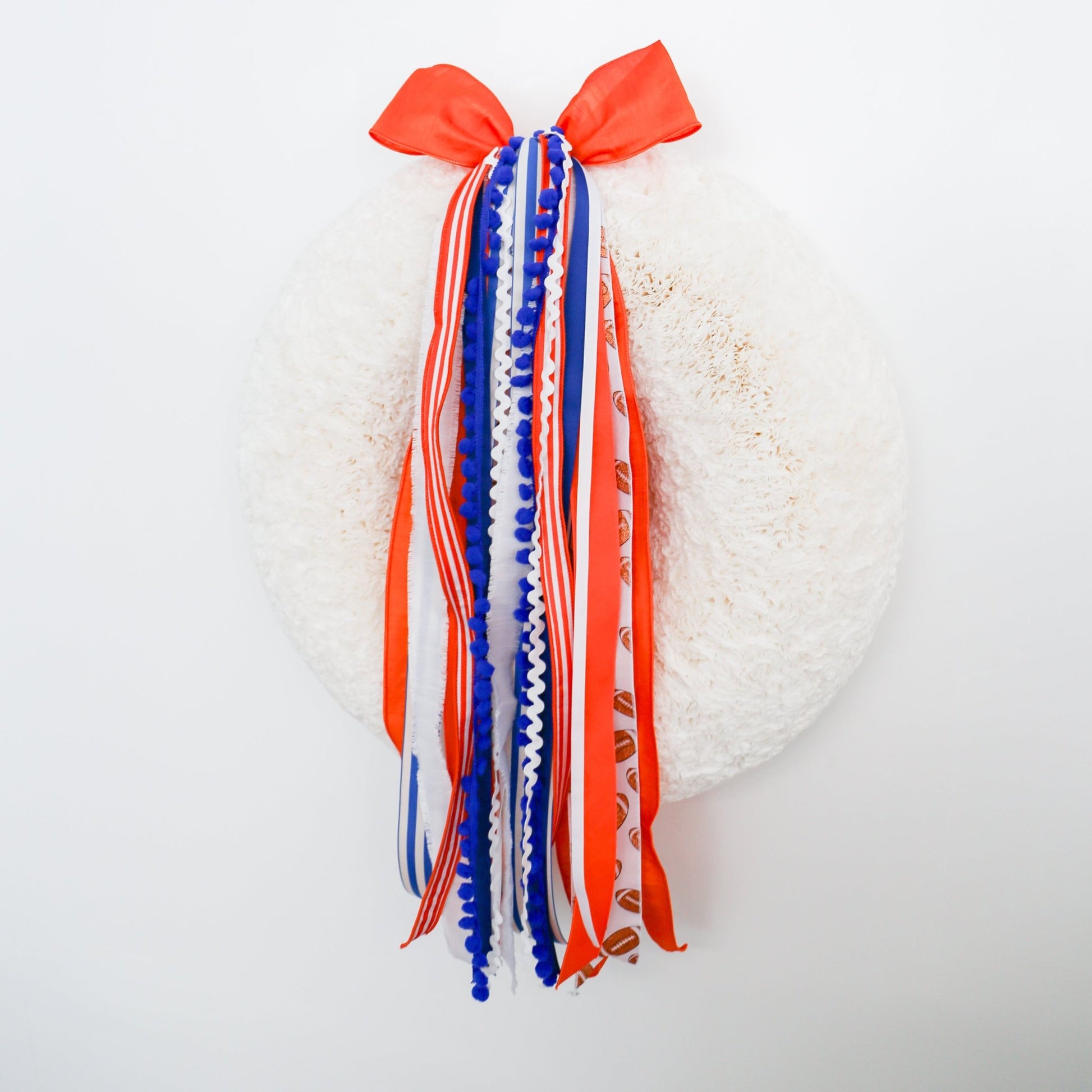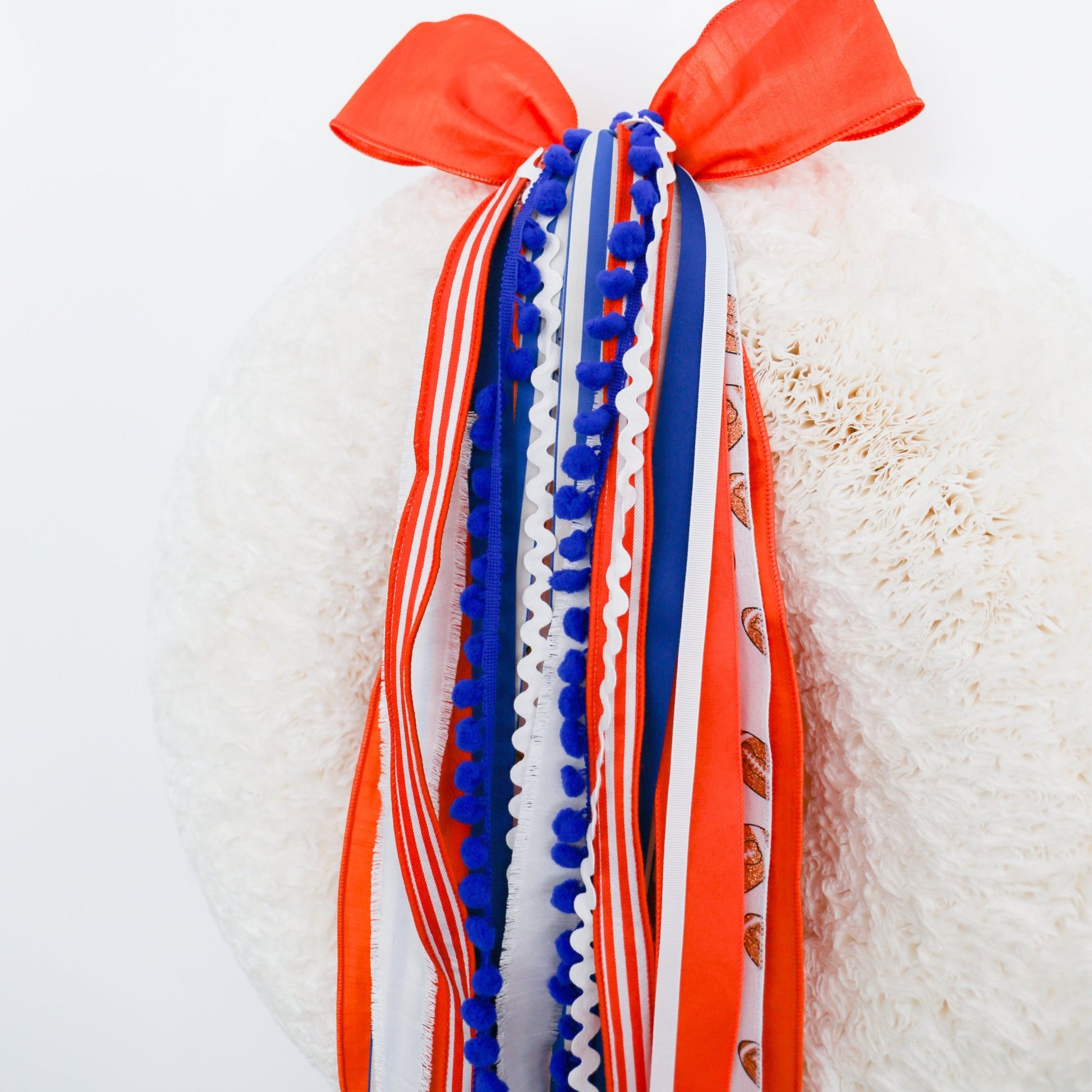 Bring the spirit of game day to life with this bold and energetic ribbon set! Whether you're cheering for the Brighton Bengals, Galion Tigers, Reservoir Gators, Berea–Midpark Titans, or Timpview Eagles, this set captures the pride of any blue-and-orange squad. It includes a classic football ribbon perfect for Friday night lights, a playful orange ric rac for flair, and a vibrant blue-and-white striped ribbon for that signature team color vibe. Ideal for pep rallies, tailgates, or celebrating your favorite team—this set is ready to rally!