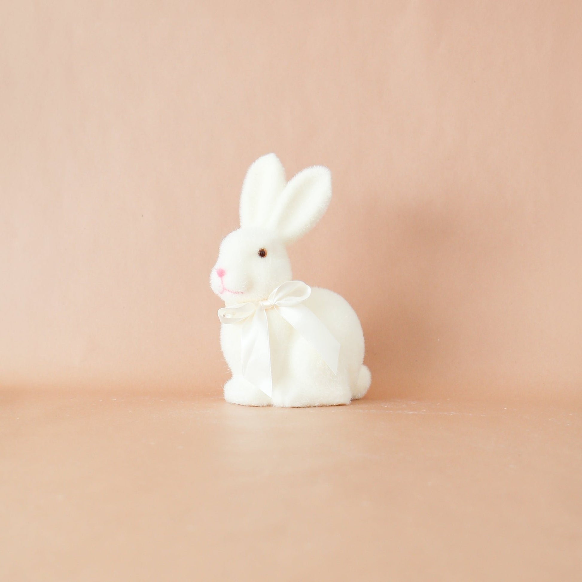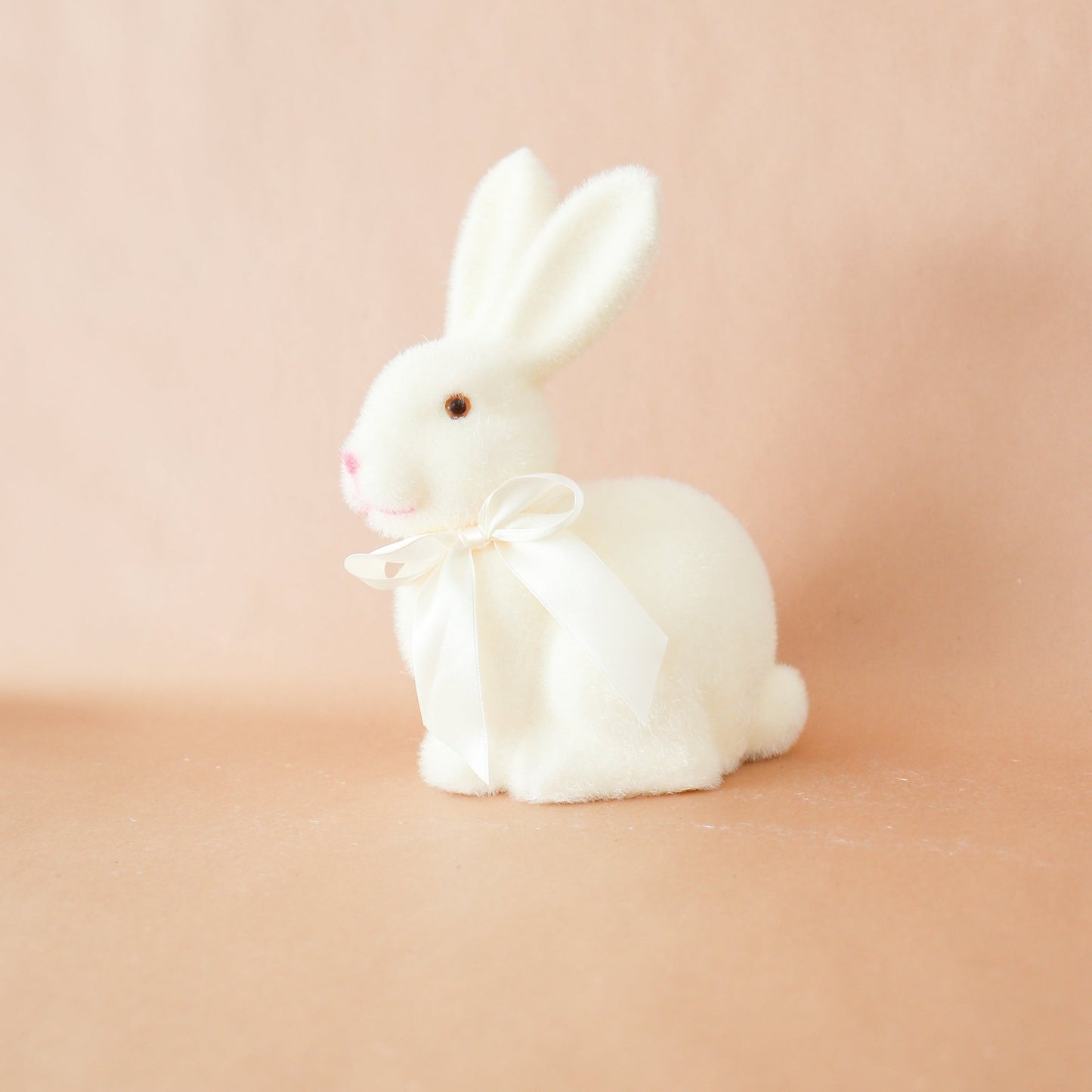 Bring a touch of charm to your spring and Easter decor with this Ivory Flocked Sitting Bunny. Featuring a soft, velvety texture and a classic sitting pose, this 9-inch bunny figurine adds a subtle elegance to any space. Its neutral ivory color makes it a versatile accent, perfect for mantels, tabletops, and seasonal displays.
