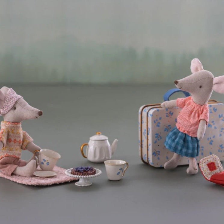Unleash Imagination with the Maileg Afternoon Treat, Mouse - Blue Madelaine Tea Set