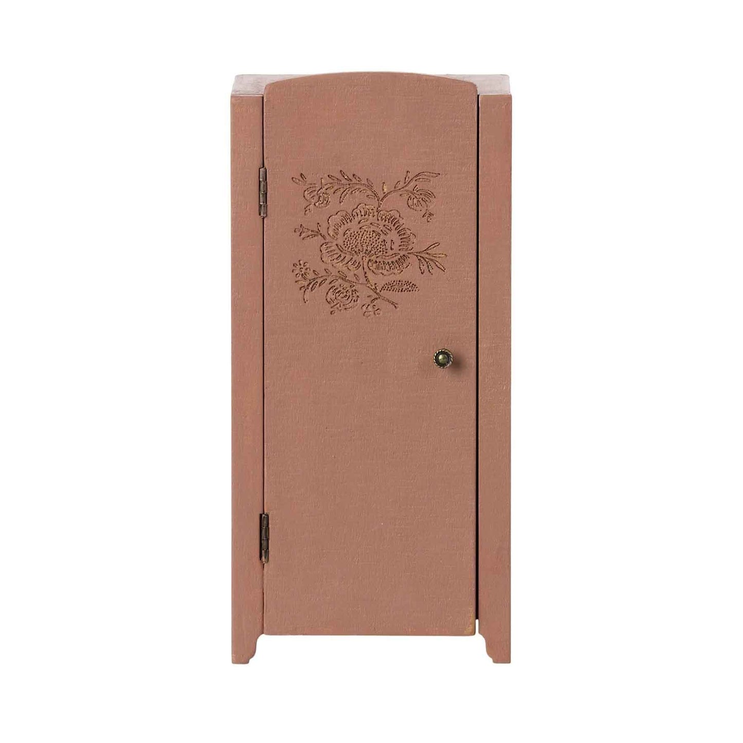 The Maileg Miniature Dusty Rose Closet brings vintage charm and functionality to your Maileg dollhouse. Designed with an embossed floral detail on the front and elegant printed wallpaper inside, this petite wooden wardrobe adds a beautiful touch of whimsy to any dollhouse room.