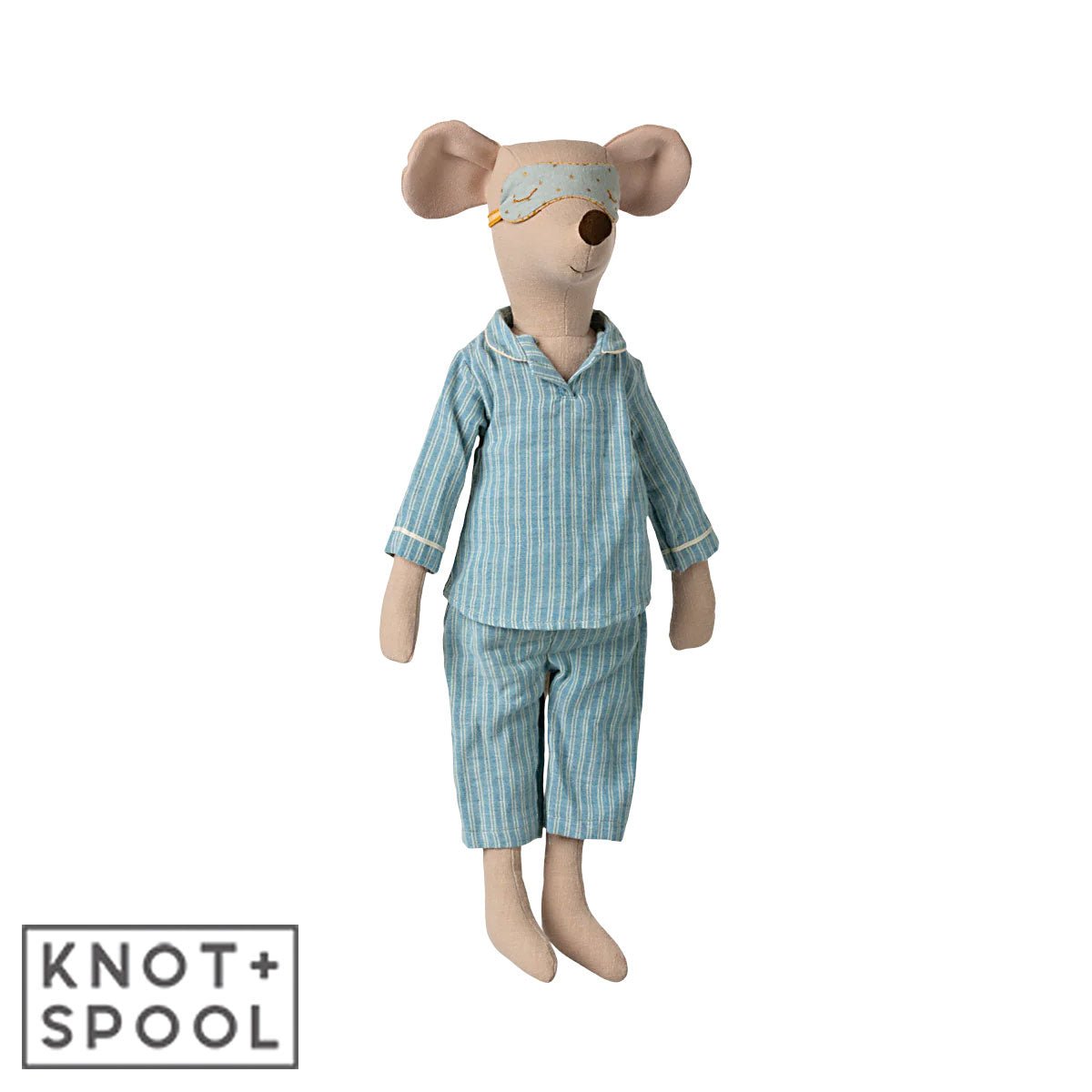 Maileg Maxi Mouse in Blue-Striped Pyjamas