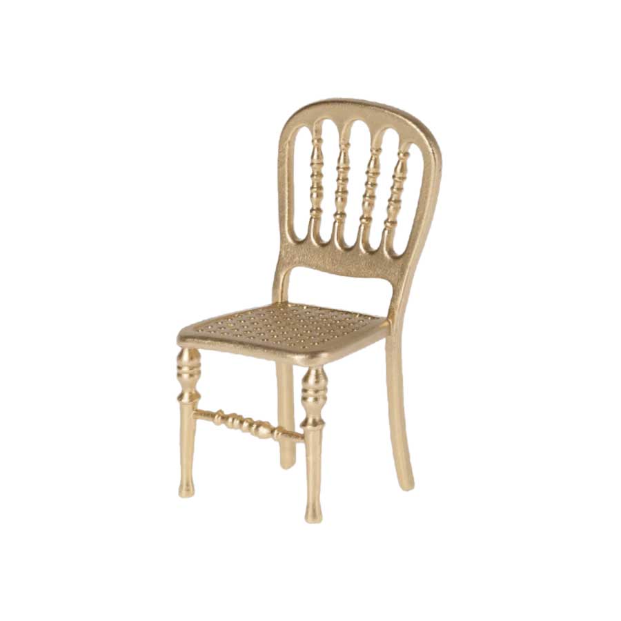 Add a touch of vintage elegance to your Maileg Mouse world with the Maileg Mouse Gold Chair. Perfectly sized for castle gatherings or quiet corners in the Maileg Dollhouse, this regal chair is a stunning piece of miniature Maileg Furniture.