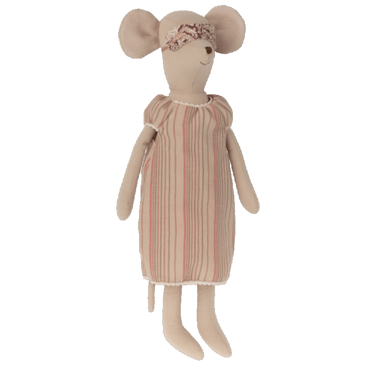 2022 Maileg Mouse Medium, Pink-Stripe Nightgown