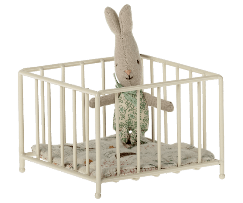 2. Sturdy and Stylish: Crafted from durable metal and painted in a soft, soothing off-white tone, the playpen offers both strength and style, blending seamlessly with the Maileg aesthetic.