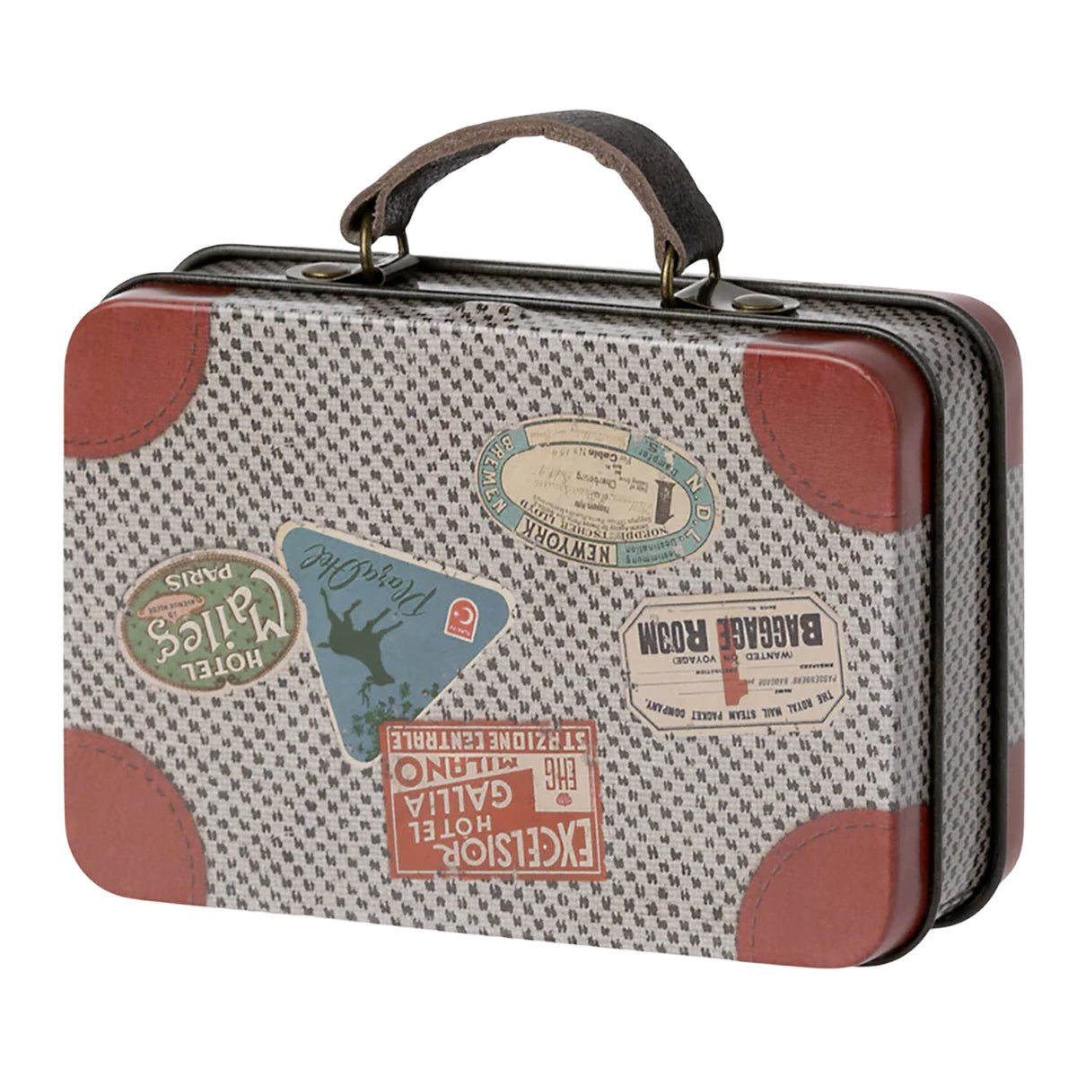 The Maileg Grey Metal Travel Suitcase is a stylish addition to your collection, featuring a new and beautiful print that adds sophistication to any setting.