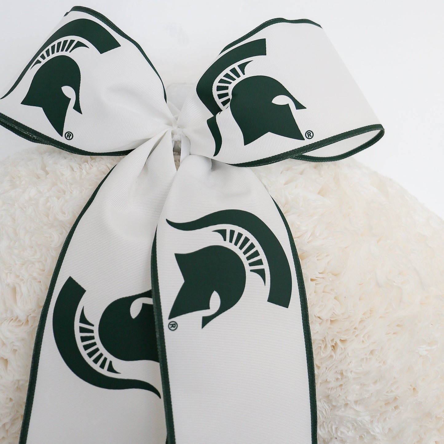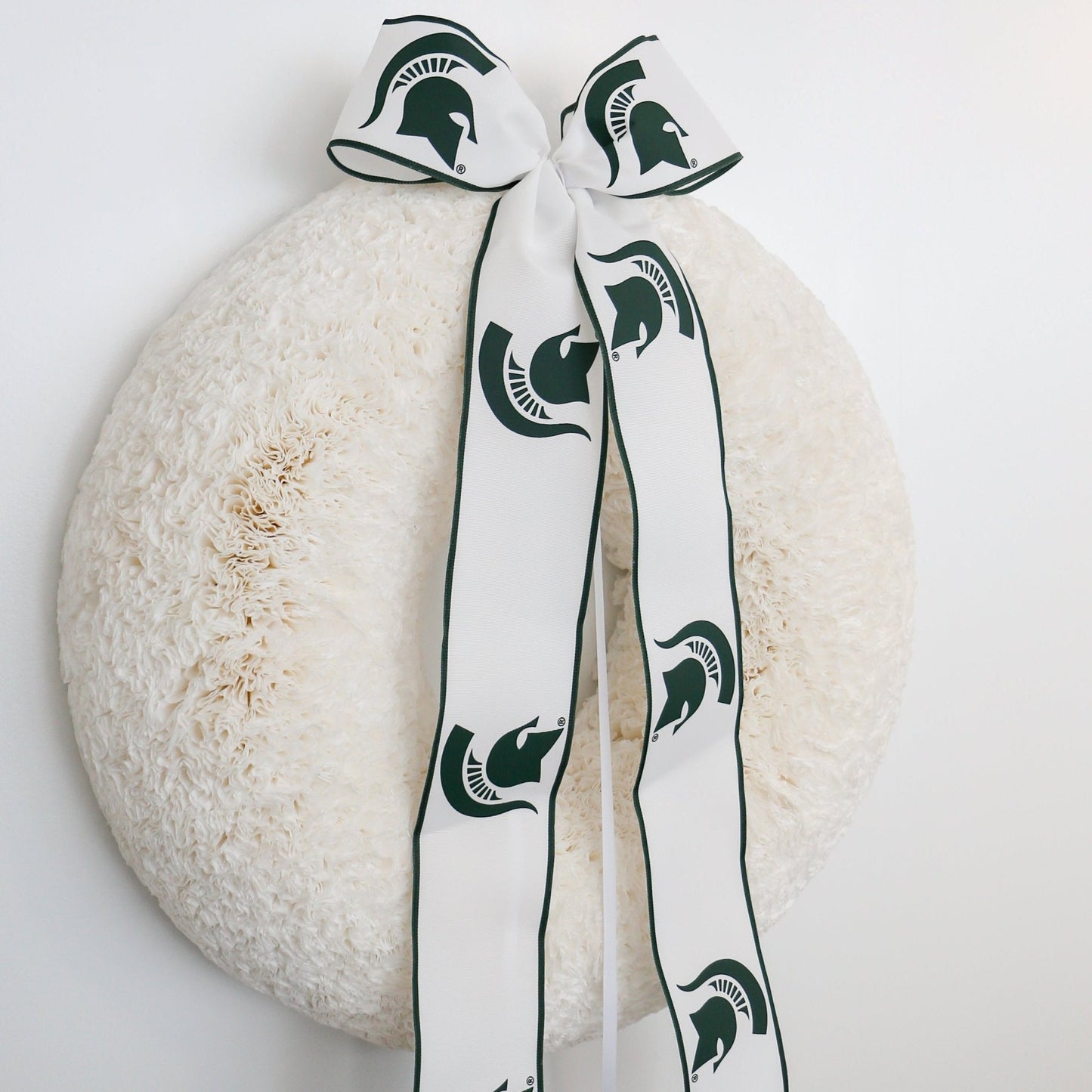 Introducing the Michigan State Spartans Bow, crafted in the university’s iconic green and white. This bow, featuring our custom-designed Michigan State ribbon, is a tribute to the legacy of the Spartans. Display it on your front door or entryway as more than just decor—it’s a proud statement of school spirit. Knot + Spool is honored to bring authentic Spartan pride directly to your home.