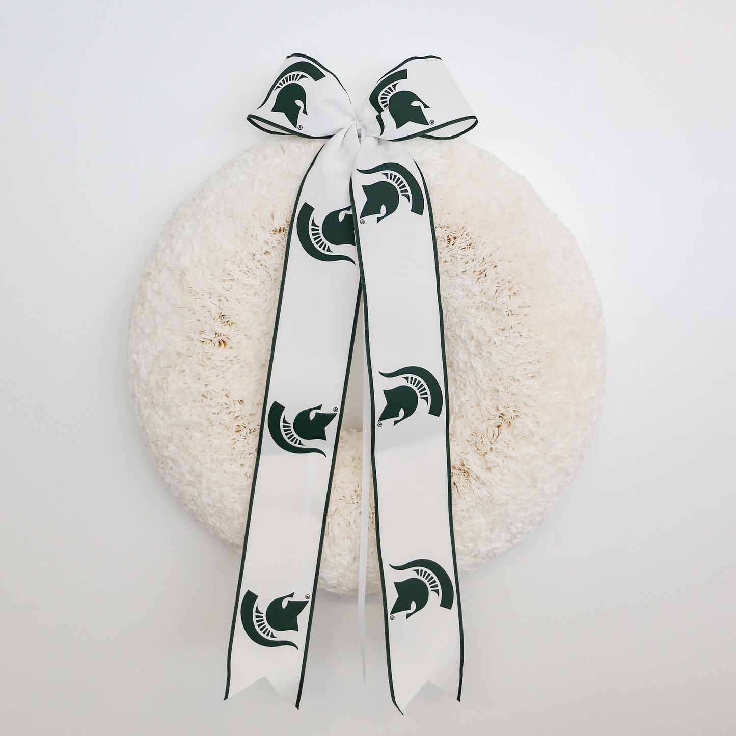 The Michigan State Spartans Bow is more than just an accessory—it’s a symbol of your pride and loyalty to Michigan State University. Perfect for fans looking to add a touch of Spartan pride to their home decor, this bow combines quality craftsmanship with true school spirit. Show your colors, embrace your team, and let your front door reflect your Michigan State pride with this exclusive bow from Knot + Spool.