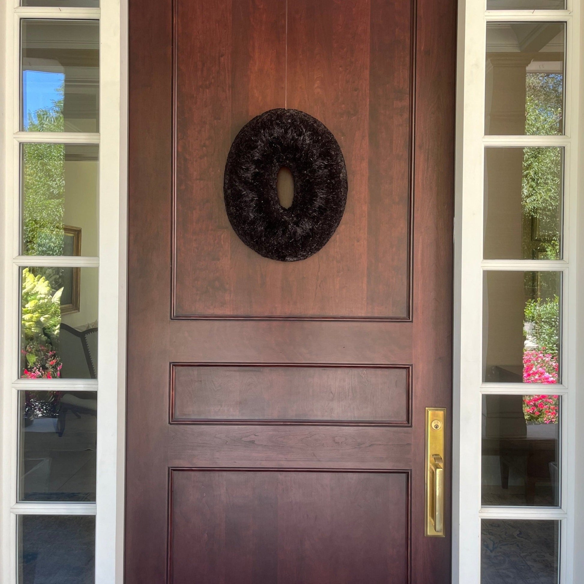 Whether you're hosting a cozy fall gathering or adding a spooky touch to your Halloween festivities, the Midnight Black Oval Wreath sets the stage with its captivating allure. Its carefully curated design and luxurious craftsmanship create a statement piece that effortlessly enhances your decor, offering a unique blend of elegance and autumnal spirit.