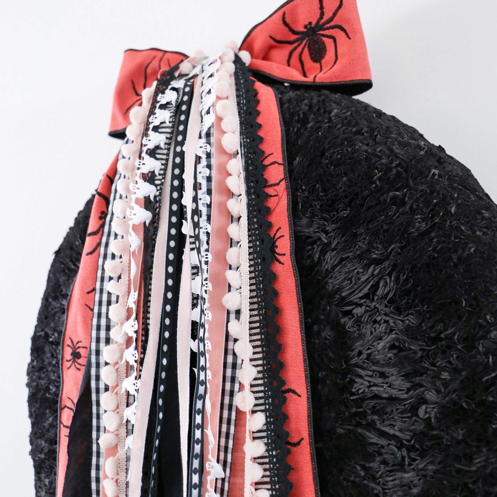 >Just like our meticulously crafted ribbon sets, each Midnight Black Wreath is meticulously hand-cut and uniquely tailored for every customer. While we strive for consistency, please be aware that minor variations in width and pattern may occur, adding to the distinctive character of your wreath.