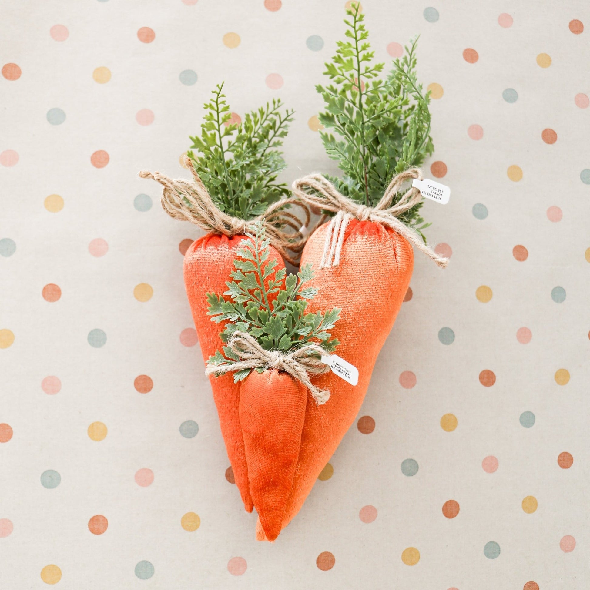 Bring a touch of elegance and whimsy to your spring décor with the Plush Velvet Carrot. Crafted from soft, luxurious velvet, this charming carrot adds a sophisticated yet playful accent to Easter displays, table centerpieces, or farmhouse-inspired vignettes. Its plush texture and rich color make it a delightful addition to seasonal decorating, whether styled in a basket, placed on a mantel, or paired with bunny figurines for a festive touch.