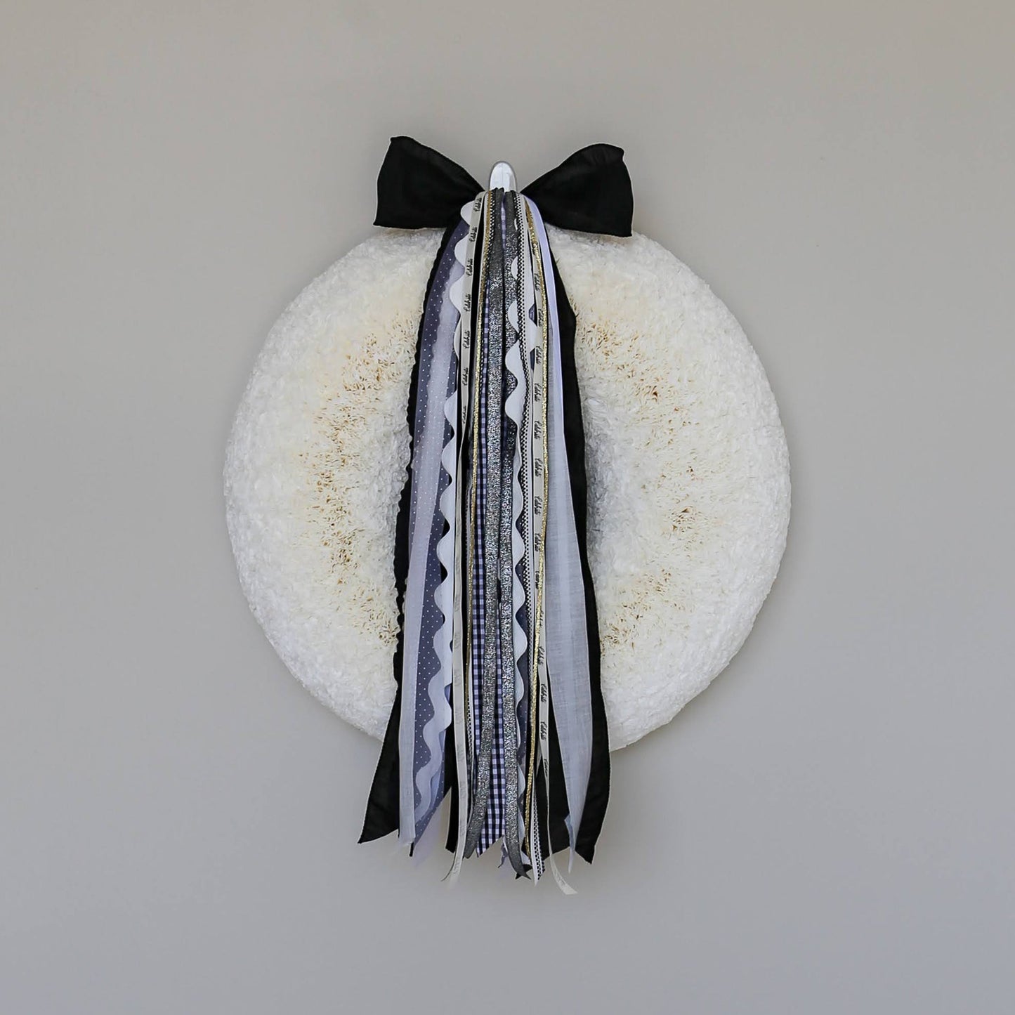 A new chapter begins at graduation, and new opportunities await. Celebrating your graduate's special occasion and accomplishment has inspired this ribbon set. Classic black and white with touches of gold are interwoven, including black ruffle, white ric rac, and black velvet ribbons, among others. The ribbon is printed with the words "Celebrate" to finish off this set. Our hope is that by celebrating your graduate, they will be off to great places and enjoy the new opportunities that await.
