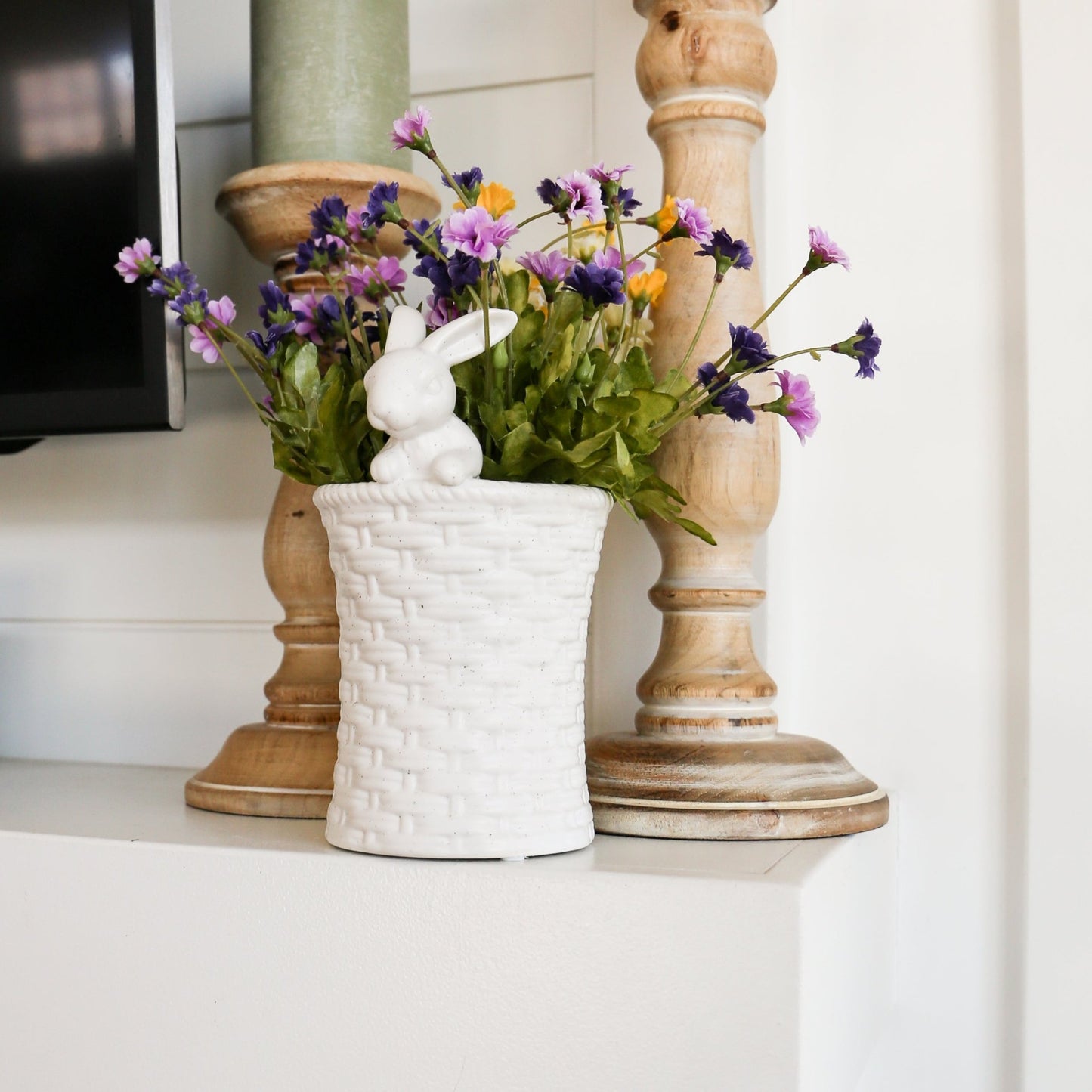Welcome the beauty of spring with the charming Springtime Bunny Ceramic Vase. Crafted from white ceramic, this adorable vase features a subtle bunny-inspired design, making it the perfect piece to showcase your favorite florals or greenery. Whether displayed on a mantel, tabletop, or as part of an Easter centerpiece, this vase adds a touch of whimsy and elegance to any space.